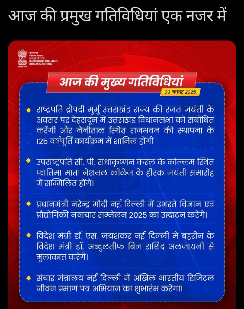рдирдИ рджрд┐рд▓реНрд▓реА, 3 рдирд╡рдВрдмрд░ 2025ред