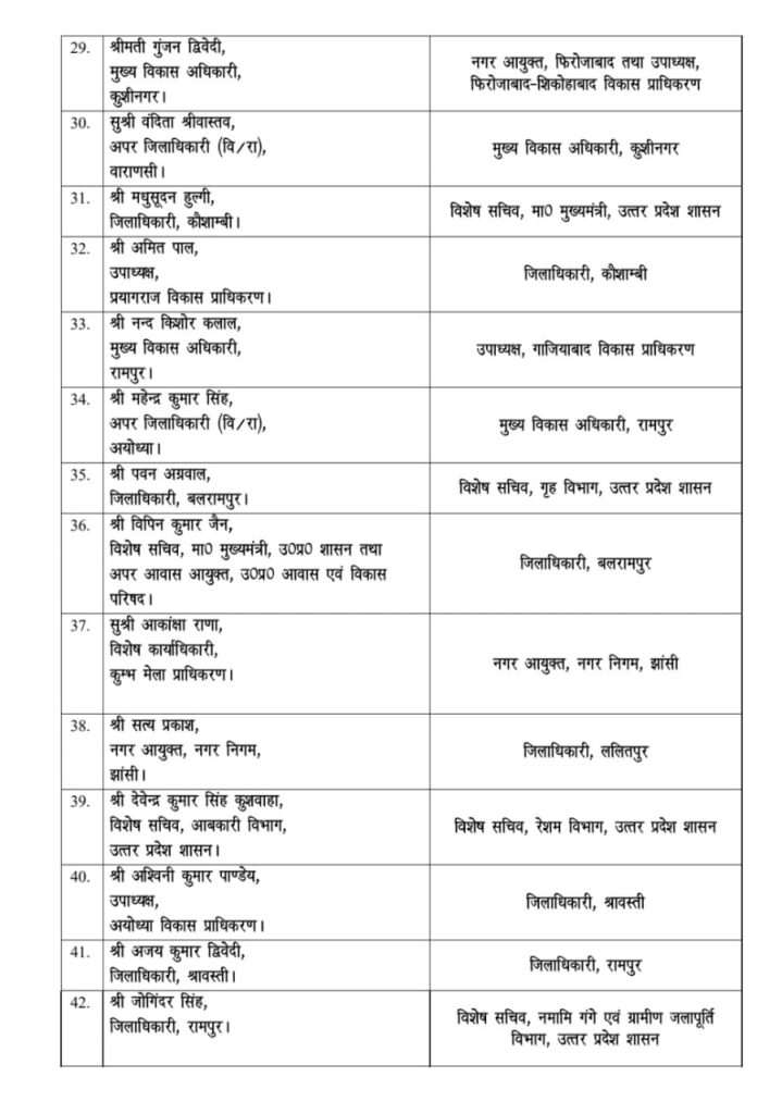 рд▓рдЦрдирдКред рдЙрддреНрддрд░ рдкреНрд░рджреЗрд╢ рд╢рд╛рд╕рди рдиреЗ рдЪрд╛рд░ рдЪрд░рдгреЛрдВ рдореЗрдВ рдЕрдм рддрдХ рдХреБрд▓ 46 рд╡рд░рд┐рд╖реНрда IAS рдЕрдзрд┐рдХрд╛рд░рд┐рдпреЛрдВ рдХреЗ рддрдмрд╛рджрд▓реЗ рдХрд░ рджрд┐рдП рд╣реИрдВред рд╕реЛрдорд╡рд╛рд░ рджреЗрд░ рд░рд╛рдд рдЬрд╛рд░реА рдЪреМрдереА рд╕реВрдЪреА рдХреЗ рд╕рд╛рде рдкреНрд░рджреЗрд╢ рдореЗрдВ рдкреНрд░рд╢рд╛рд╕рдирд┐рдХ рд╣рд▓рдХреЛрдВ рдореЗрдВ рдмрдбрд╝рд╛ reshuffle рджреЗрдЦрдиреЗ рдХреЛ рдорд┐рд▓рд╛ рд╣реИред рдЗрд╕ рдлреЗрд░рдмрджрд▓ рдореЗрдВ рдХрдИ рдЬрд┐рд▓реЛрдВ рдХреЗ рдЬрд┐рд▓рд╛рдзрд┐рдХрд╛рд░реА, рдордВрдбрд▓рд╛рдпреБрдХреНрдд, рдирдЧрд░ рдЖрдпреБрдХреНрдд, рдореБрдЦреНрдп рд╡рд┐рдХрд╛рд╕ рдЕрдзрд┐рдХрд╛рд░реА, рдкреНрд░рдмрдВрдз рдирд┐рджреЗрд╢рдХ рдФрд░ рд╡рд┐рднрд╛рдЧреАрдп рд╕рдЪрд┐рд╡ рд╕реНрддрд░ рдХреЗ рдЕрдзрд┐рдХрд╛рд░рд┐рдпреЛрдВ рдХреЗ рдХрд╛рд░реНрдпрдХреНрд╖реЗрддреНрд░ рдмрджрд▓реЗ рдЧрдП рд╣реИрдВред