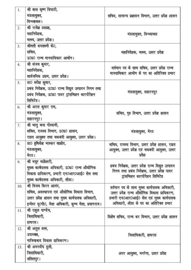 ЁЯФ╣ рдореБрдЦреНрдп рддрдмрд╛рджрд▓реЗ тАФ рдкрд╣рд▓реА рд╕реВрдЪреА (13 IAS рдЕрдзрд┐рдХрд╛рд░реА)