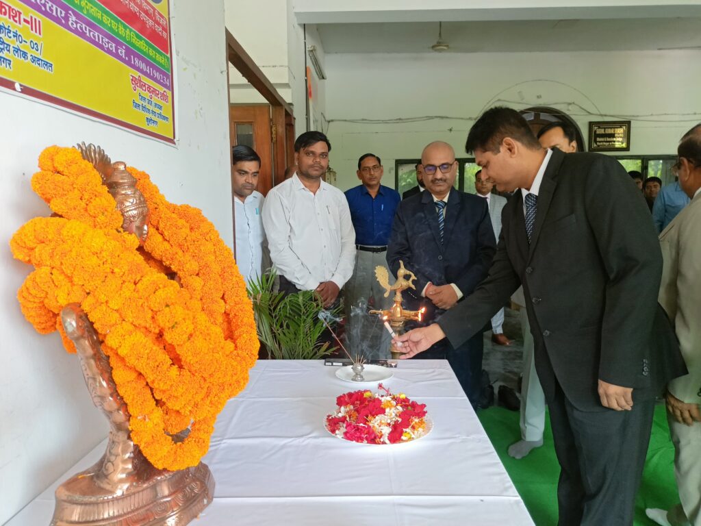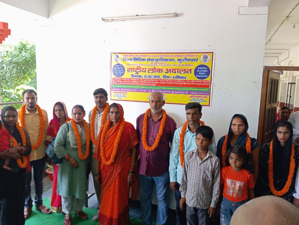 कुशीनगर आज दिनांक 13.09.2025 काे राष्ट्रीय विधिक सेवा प्राधिकरण, नई दिल्ली व राज्य विधिक सेवा प्राधिकरण, लखनऊ के निर्देशानुसार जिला विधिक सेवा प्राधिकरण, कुशीनगर के तत्वाधान में राष्ट्रीय लोक अदालत का आयोजन किया गया, जिसका शुभारम्भ सुशील कुमार शशि, जनपद न्यायाधीश/अध्यक्ष जिला विधिक सेवा प्राधिकरण, कुशीनगर, गुलाब सिंह-।।, प्रधान न्यायाधीश परिवार न्यायालय, अनिरुद्घ कुमार तिवारी, अपर जिला एवं सत्र न्यायाधीश कोर्ट नं०1 एवं निवेश कटियार, अपर पुलिस अधीक्षक, कुशीनगर के द्वारा संयुक्त रूप से दीप प्रज्जवलित कर किया गया। इस अवसर पर इफराक अहमद, विशेष न्यायाधीश एस०सी०/एस०टी० एक्ट, कुशीनगर स्थान पडरौना, आनन्द प्रकाश-।।।, अपर जिला एवं सत्र न्यायाधीश कोर्ट नं०-3/नोडल अधिकारी राष्ट्रीय लोक अदालत, अंगद प्रसाद-।।, अध्यक्ष, स्थायी लोक अदालत, परमेश्वर प्रसाद, अपर जिला एवं सत्र न्यायाधीश/एफ०टी०सी०-।, मोहम्मद आजाद, अतिरिक्त प्रधान न्यायाधीश, परिवार न्यायालय, शैलेन्द्र मणि त्रिपाठी, अपर जिला एवं सत्र न्यायाधीश/सचिव, जिला विधिक सेवा प्राधिकरण, कुशीनगर, सत्यपाल सिंह प्रेमी, अपर जिला एवं सत्र न्यायाधीश/एफ०टी०सी०-।।, दिनेश कुमार-II, अपर जिला एवं सत्र न्यायाधीश/विशेष न्यायाधीश पाॅक्सो एक्ट, विजय कुमार वर्मा-II मुख्य न्यायिक मजिस्ट्रेट, रामेश्वर दयाल, सिविल जज (एस०डी०), प्रभात सिंह, सिविल जज (एस0डी0)/एफ०टी०सी०, अजीत कुमार मिश्र, सिविल जज (जू०डि०), शान्तनु तनवर, न्यायिक मजिस्ट्रेट, सुनन्दन गोयल, सिविल जज (जू०डि०) न्यायाधिकारी ग्राम न्यायालय, हाटा, विवेक प्रजापति, सिविल जज (जू०डि०) न्यायाधिकारी ग्राम न्यायालय, तमकुही राज एवं दीपाली सिन्हा सदस्य, स्थायी लोक अदालत, जिला शासकीय अधिवक्ता फौजदारी गोरख प्रसाद यादव, जिला शासकीय अधिवक्ता सिविल रमेश कुमार राय एवं सहायक जिला शासकीय अधिवक्ता के०के० पाण्डेय, उपेन्द्र कुमार पाठक, सुनील कुमार मिश्र, संजय कुमार तिवारी, फूलबदन, अजय कुमार गुप्ता तथा कर्मचारीगण राधेश्याम प्रसाद, फणीन्द्र मिश्र, करूणेश सेन्ट्रल नाजीर, कुलदीप डिप्टी नाजीर, संजय आदि एवं जिला विधिक सेवा प्राधिकरण, कुशीनगर के कर्मचारीगण राजकुमार वर्मा, प्रदीप झा, विजय कुमार मिश्र, अमरनाथ यादव, रविन्द्र नाथ, मारकण्डेय यादव, उपेन्द्र यादव, सुमन आदि सहित काफी संख्या में अधिवक्ता तथा वादकारीगण उपस्थित रहे।
