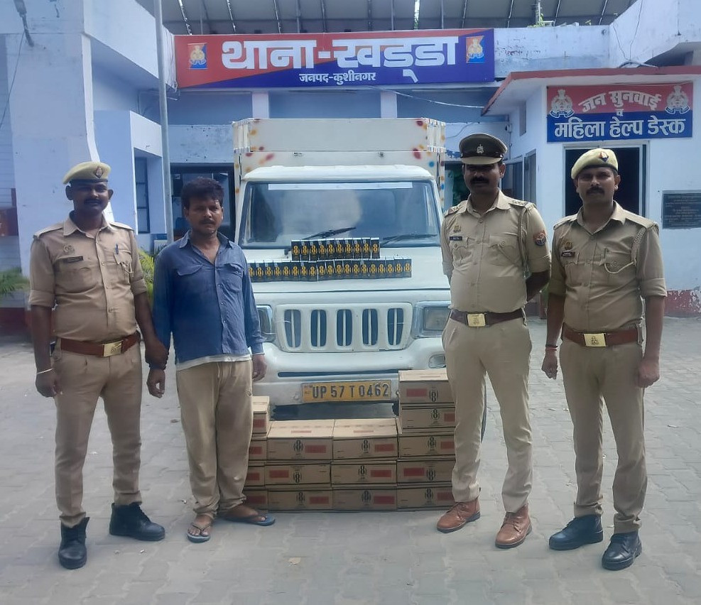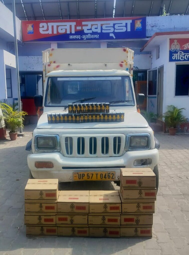 कुशीनगर पुलिस ने एक बड़ी कार्रवाई में अवैध अंग्रेजी शराब की तस्करी को विफल करते हुए एक पिकअप वाहन से 16 पेटी 8PM अवैध अंग्रेजी शराब बरामद की। इस दौरान एक अभियुक्त मो. रिजवान उर्फ रिजवानउल्लाह पुत्र सलाउद्दीन निवासी वार्ड नं. 05 दुदहीं थाना विशुनपुरा जनपद कुशीनगर को गिरफ्तार किया गया। बरामद शराब की कीमत लगभग 8 लाख रुपये बताई जा रही है। पुलिस अधीक्षक कुशीनगर श्री संतोष कुमार मिश्रा के निर्देशन में चलाए जा रहे अभियान के तहत यह कार्रवाई की गई। गिरफ्तार अभियुक्त के खिलाफ थाना खड्डा पर मु.अ.सं. 265/25 धारा 60/72 आबकारी अधिनियम में अभियोग पंजीकृत कर अग्रिम विधिक कार्यवाही की जा रही है।