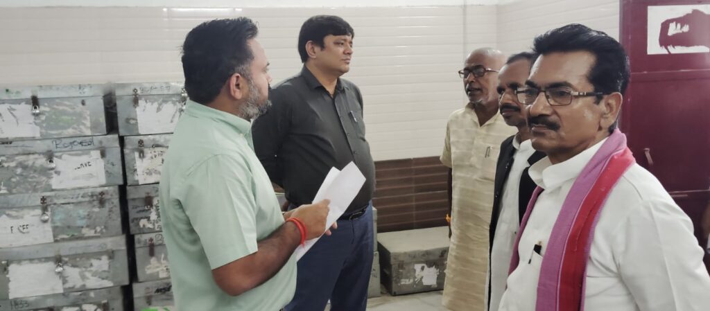 जिला निर्वाचन अधिकारी/जिलाधिकारी महेंद्र सिंह तंवर ने आज मान्यता प्राप्त राजनैतिक दलों के प्रतिनिधियों के साथ निर्वाचन कार्यालय वेयरहाउस में रखे ईवीएम तथा वीवीपीएटी मशीनो का निरीक्षण किया। इस दौरान उन्होंने वेयरहाउस के चारों तरफ लगाए गए सीसीटीवी कैमरो की की स्थिति, कंट्रोल रूम, कक्षवार विद्युत आपूर्ति, खिड़कियों एवं रोशनदानों को सुरक्षित रखने के उपायो सहित अन्य बिंदुओं का गहन निरीक्षण किया।
