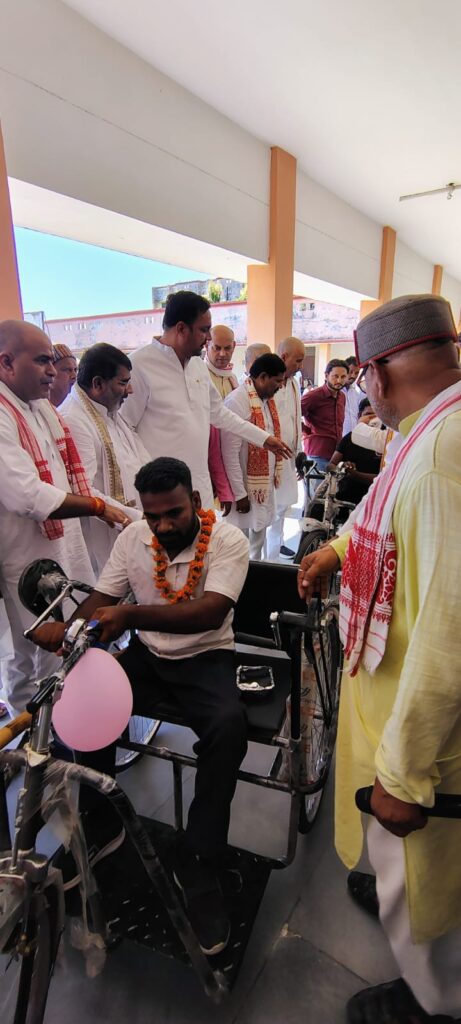 सेवा पखवाड़ा 2025 के अन्तर्गत 180 दिव्यांगजनों को विभिन्न सहायक उपकरणों में 80 ट्राईसाईकिल, 23 स्मार्ट केन, 40 जोड़ा वैशाखी व 37 व्हीलचेयर लाभान्वित किया गया। इस आयोजन में नवीन संकेत मूक बधिर इण्टर कालेज के बालिकाओं द्वारा कलाकृतियां प्रदान कर मा० प्रतिनिधियों का स्वागत किया गया।