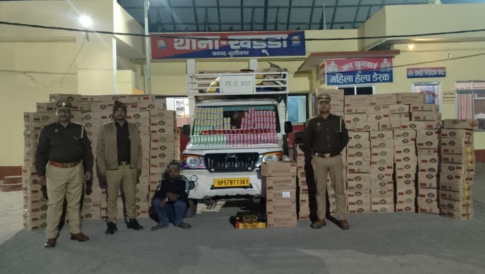 दिनांक 19 जनवरी 2026 को थाना खड्डा पुलिस को मुखबिर से सूचना मिली कि एक सफेद रंग की पिकअप गाड़ी में अवैध शराब की बड़ी खेप बिहार ले जायी जा रही है। सूचना पर तत्परता दिखाते हुए प्रभारी निरीक्षक श्री गिरिजेश उपाध्याय के नेतृत्व में टीम ने घेराबंदी कर वाहन को रोक लिया। तलाशी में पिकअप से कुल 290 पेटी अवैध देशी शराब ‘बंटी बबली’ व ‘रोमियो राजा गोल्ड’ तथा 150 पेटी अवैध बीयर विभिन्न ब्रांड की बरामद की गई। बरामद सामग्री व वाहन की अनुमानित कीमत लगभग 21 लाख रुपये आंकी गई है।