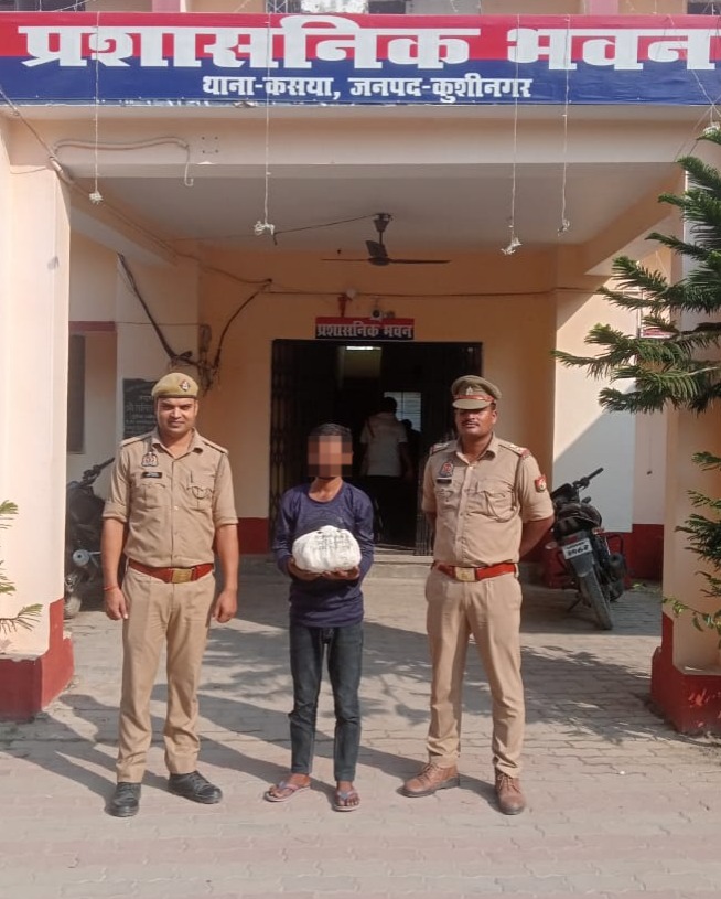 कुशीनगर। जिले में अवैध मादक पदार्थों की तस्करी, परिवहन व बिक्री के विरुद्ध चलाए जा रहे विशेष अभियान के तहत कसया पुलिस ने एक बड़ी कार्यवाही को अंजाम देते हुए एक अभियुक्त को गिरफ्तार कर 1.05 किलोग्राम अवैध गाँजा बरामद किया है। बरामद मादक पदार्थ की अनुमानित कीमत लगभग 20,000 रुपये बताई जा रही है।