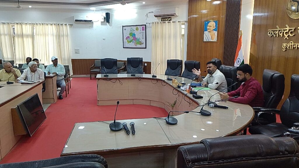 जिलाधिकारी महेंद्र सिंह तंवर की अध्यक्षता में आज जनपद के प्रतिनिधित्व करने वाले कृषकों एवं पडरौना चीन मिल के कर्मचारियों के प्रतिनिधियों के साथ एक आवश्यक बैठक कलेक्ट्रेट सभागार में संपन्न की गई।