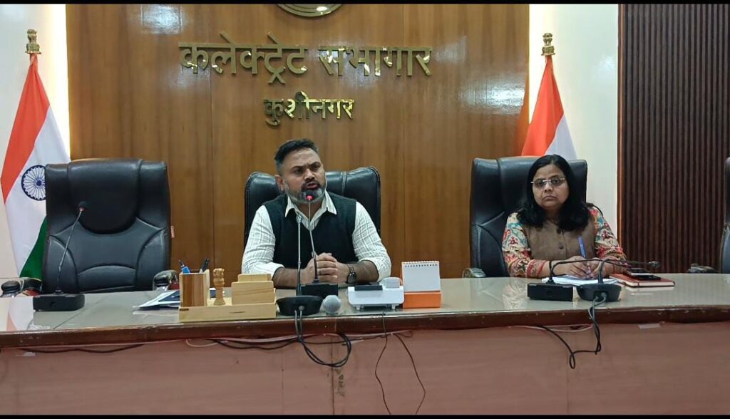 कुशीनगर। नेबुआ नौरंगिया ब्लॉक के पिपरा खुर्द के गुलहरिया टोले में बुखार से दो मासूम बच्चों की दर्दनाक मौत के बाद जिला प्रशासन पूरी तरह अलर्ट मोड में आ गया है। जिलाधिकारी महेंद्र सिंह ने सोमवार को कलेक्ट्रेट सभागार में आपात बैठक बुलाकर स्वास्थ्य विभाग, जिला पंचायत राज अधिकारी, जल निगम, मुख्य पशु चिकित्सा अधिकारी सहित सभी संबंधित विभागों की जमकर क्लास ली।