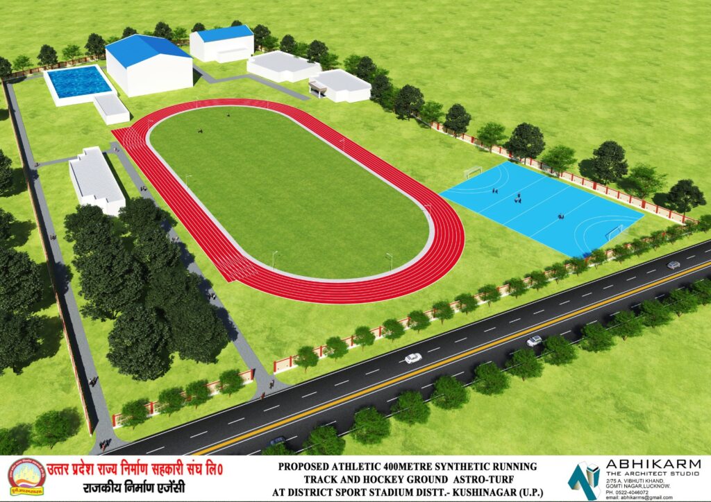 जनपद कुशीनगर में खेल अधोसंरचना को सुदृढ़ करने एवं खिलाड़ियों को आधुनिक सुविधाओं से युक्त प्रशिक्षण उपलब्ध कराने के उद्देश्य से डिस्ट्रिक्ट स्पोर्ट्स स्टेडियम, कुशीनगर में 400 मीटर सिंथेटिक रनिंग ट्रैक एवं 7 ए-साइड एस्ट्रो-टर्फ हॉकी फील्ड के निर्माण का प्रस्ताव तैयार कर शासन को प्रेषित किया गया है।