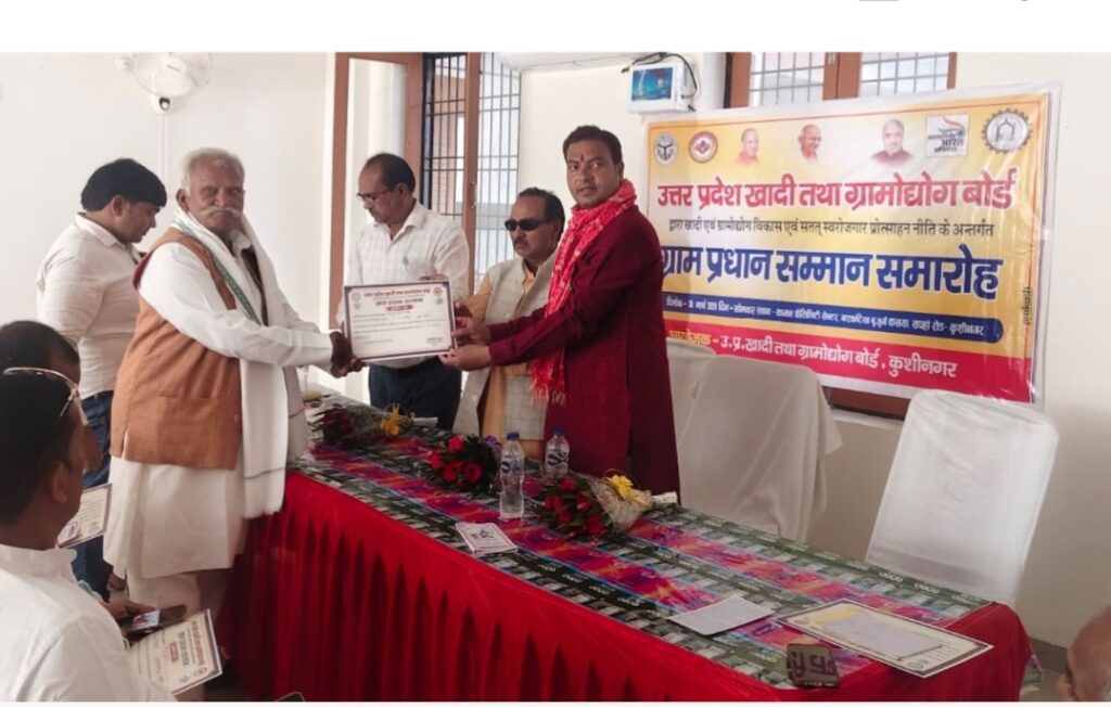 कुशीनगर में खादी एवं ग्रामोद्योग बोर्ड द्वारा आयोजित ग्राम प्रधान सम्मान समारोह ने ग्रामीण विकास की नई दिशा और दृढ़ संकल्प का स्पष्ट संदेश दिया। कसया स्थित कामन फैसिलिटी सेंटर, सपहा रोड परिसर में आयोजित इस भव्य कार्यक्रम में जनपद के विभिन्न विकास खण्डों से आए ग्राम प्रधानों की सक्रिय भागीदारी देखने को मिली, जिससे कार्यक्रम का महत्व और बढ़ गया।