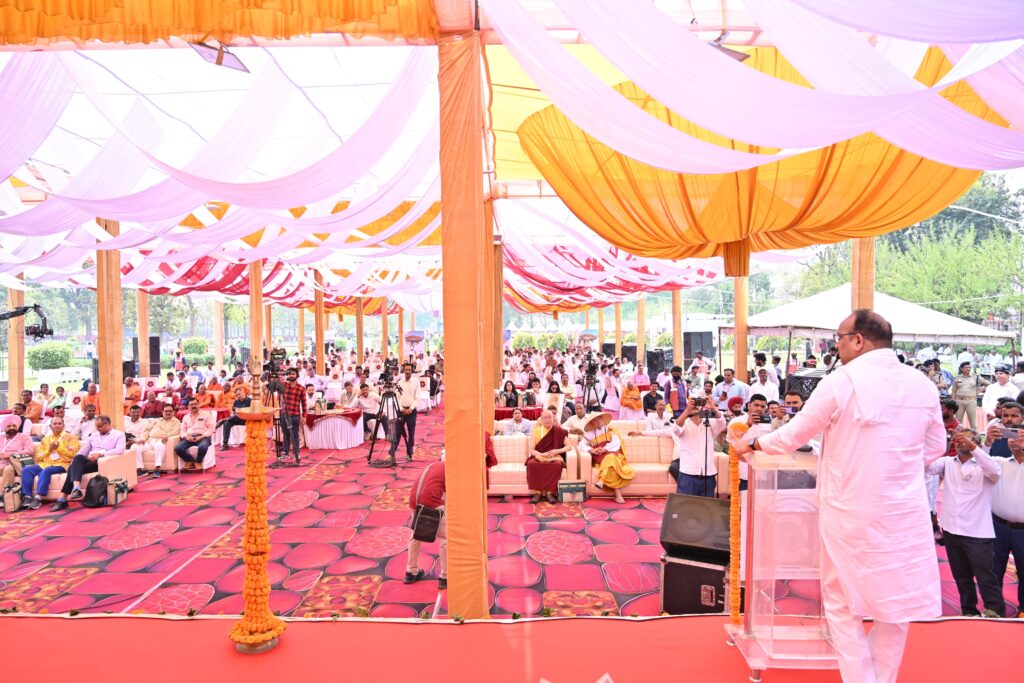 उन्होंने विश्व में चल रहे संघर्षों का जिक्र करते हुए भारत के शांति संदेश को दोहराया और कहा, “भारत युद्ध का नहीं, बुद्ध का देश है। दुनिया को शांति का रास्ता अगर कहीं से मिलेगा, तो वह भगवान बुद्ध के मध्यम मार्ग से ही मिलेगा।” उनके इस कथन पर पूरा सभागार तालियों की गूंज से गूंज उठा।