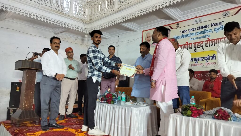 भारत सरकार एवं उ०प्र० शासन की मंशा के अनुरूप “उत्तर प्रदेश रोजगार मिशन” के अन्तर्गत जिलाधिकारी द्वारा दिए गए निर्देश के क्रम में जिला सेवायोजन कार्यालय, कुशीनगर एवं मॉडल कॅरियर सेन्टर के संयुक्त तत्वावधान में आज उदित नारायण इण्टरमीडिएट कॉलेज, पड़ौना, में एक दिवसीय वृहद रोजगार मेले का आयोजन पूर्वाहन 09:00 बजे से किया गया।