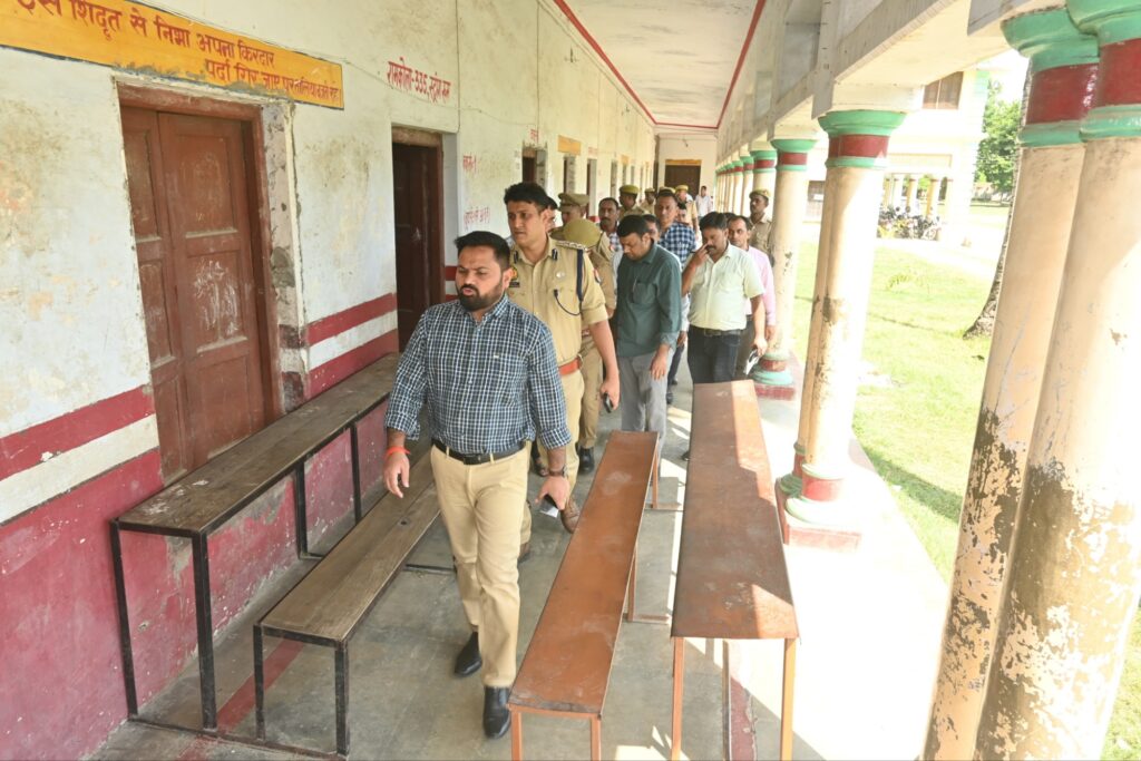 समीक्षा अधिकारी सहायक समीक्षा अधिकारी के कल दिनांक 27 जुलाई को जनपद के 18 केंद्रों पर आयोजित होने वाले परीक्षा के दृष्टिगत जिलाधिकारी महेंद्र सिंह तंवर के साथ पुलिस अधीक्षक संतोष कुमार मिश्रा द्वारा संयुक्त रूप से उदित नारायण इंटर कॉलेज, एवं उदित नारायण डिग्री कॉलेज पडरौना परीक्षा केंद्र का निरीक्षण किया गया। निरीक्षण दौरान जिलाधिकारी द्वारा सीसीटीवी कैमरा व खिड़कियां सहित परीक्षा केंद्र पर सभी आधारभूत सुविधाओं की उपलब्धता का निरीक्षण किया गया।