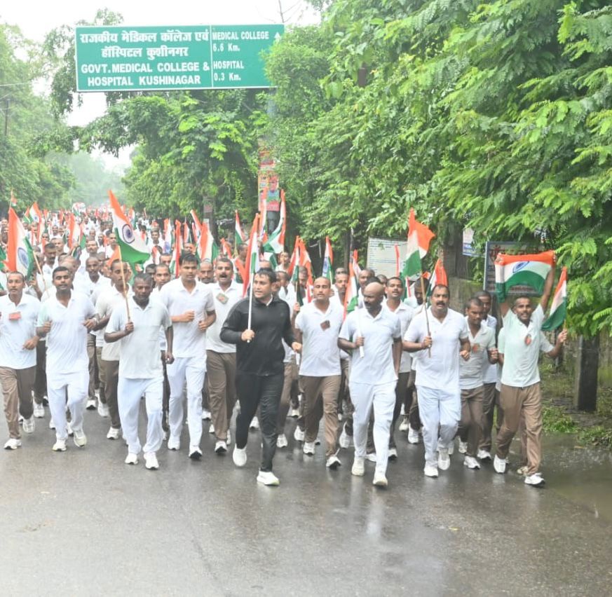 तिरंगा दौड़ का शुभारंभ पुलिस लाइन कुशीनगर से हुआ, जो रविन्द्रनगर धूस होते हुए सोहरौना तक संपन्न हुई। दौड़ के दौरान मौसम ने अचानक करवट बदली और बारिश शुरू हो गई, लेकिन भीगते हुए भी पुलिसकर्मियों का उत्साह दोगुना हो गया। बारिश की बूंदों के बीच तिरंगा लहराते हुए सभी प्रतिभागियों ने दौड़ पूरी की, जो राष्ट्रीय एकता और देशभक्ति का अद्वितीय उदाहरण बनी।