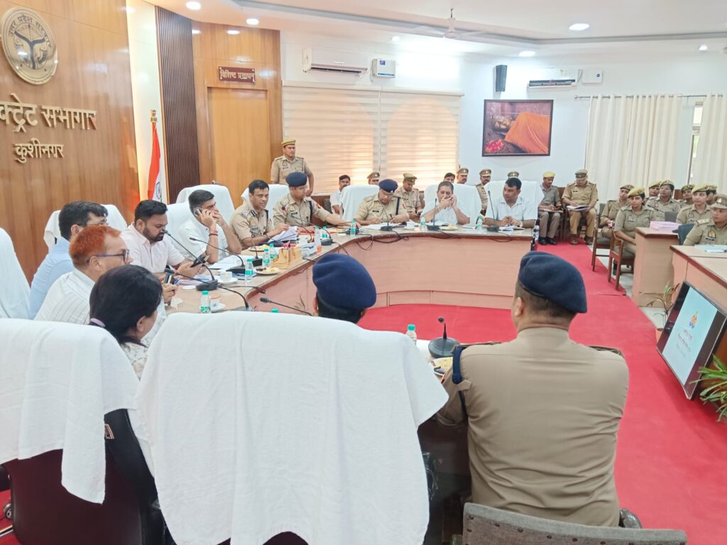 कुशीनगर “मिशन शक्ति अभियान के पाँचवें चरण के अंतर्गत जनपद स्तर पर मंडलायुक्त अनिल ढींगरा एवं डीआईजी के साथ जिलाधिकारी/पुलिस अधीक्षक सहित अन्य जनपद स्तरीय अधिकारियों के साथ एक आवश्यक बैठक कलेक्ट्रेट सभागार में संपन्न हुई।