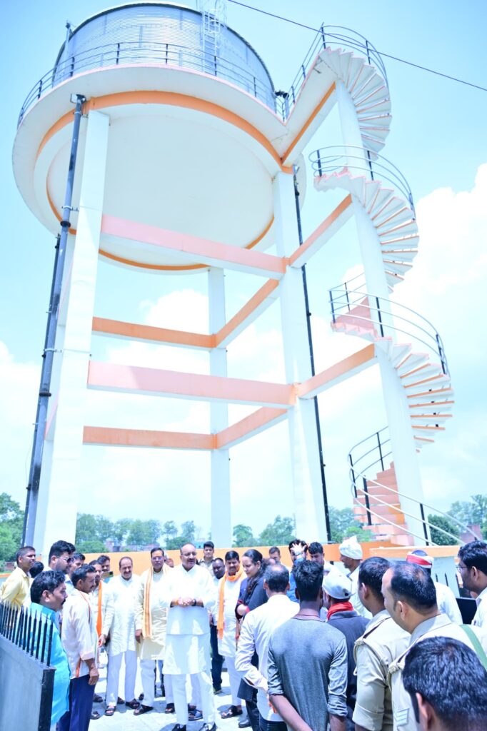 मां0 मंत्री जी द्वारा हर घर जल, जल जीवन मिशन के अन्तर्गत ग्राम पंचायत बरवाकला पडरौना कुशीनगर में निर्मित पानी की टंकी का किए निरीक्षण।