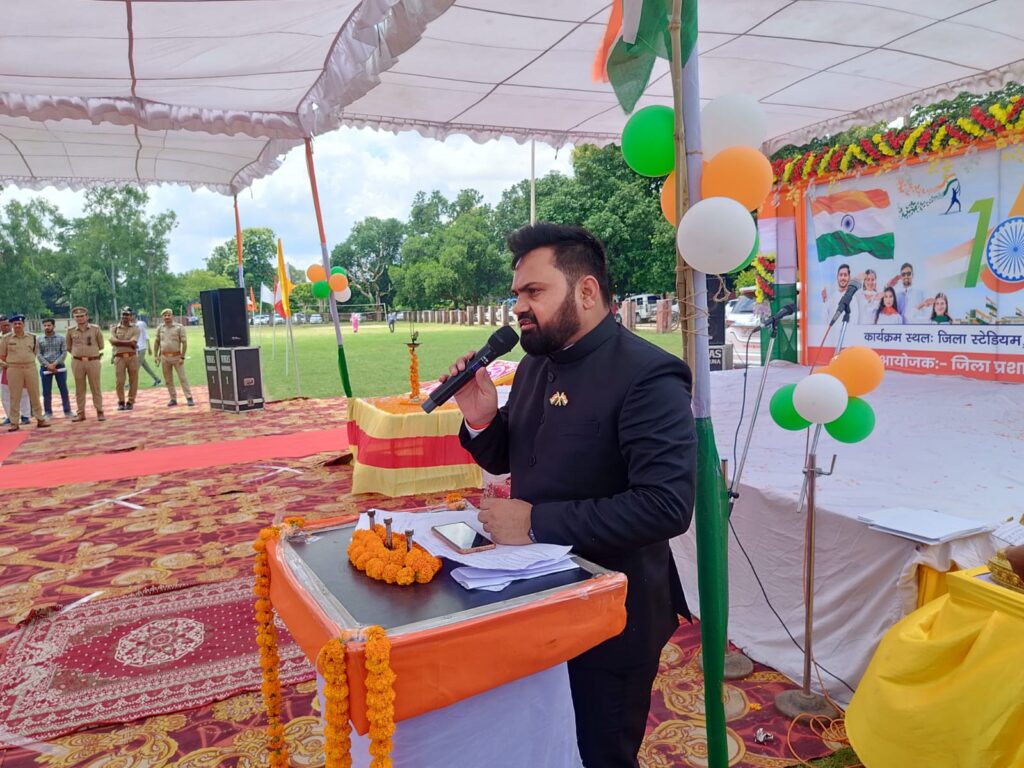 इस अवसर पर जिलाधिकारी महेंद्र सिंह तंवर ने स्वतन्त्रता दिवस की शुभकामनायें देते हुए कहा कि आज हम 79वां स्वतन्त्रता दिवस मना रहे हैं, हमें आजादी लम्बे संघर्ष के बाद मिली, हमें उन संघर्षो को याद करते हुए देश को और आगे ले जाने के लिए प्रयासरत रहना चाहिए, निरंतर नये सकारात्मक प्रयासों के द्वारा समाज व देश को आगे बढ़ाने में अपनी भूमिका का निर्वहन करना चाहिए। उन्होंने मां0 राज्य मंत्री जी का आभार प्रकट करते आश्वस्त किया कि जनपदवासियों की जो भी अपेक्षाएं हैं उसे हर संभव प्रयास कर पूर्ण करने सहित जनपद के विकास को अग्रणी श्रेणी में लाने का कार्य किया जाएगा। उन्होंने स्टेडियम के अंदर कराए जाने वाले कार्यों का भी जिक्र किया और भरोसा जताया कि आगामी स्वतंत्रता दिवस तक स्टेडियम का सभी कार्य पूर्ण करा लिए जाएंगे।