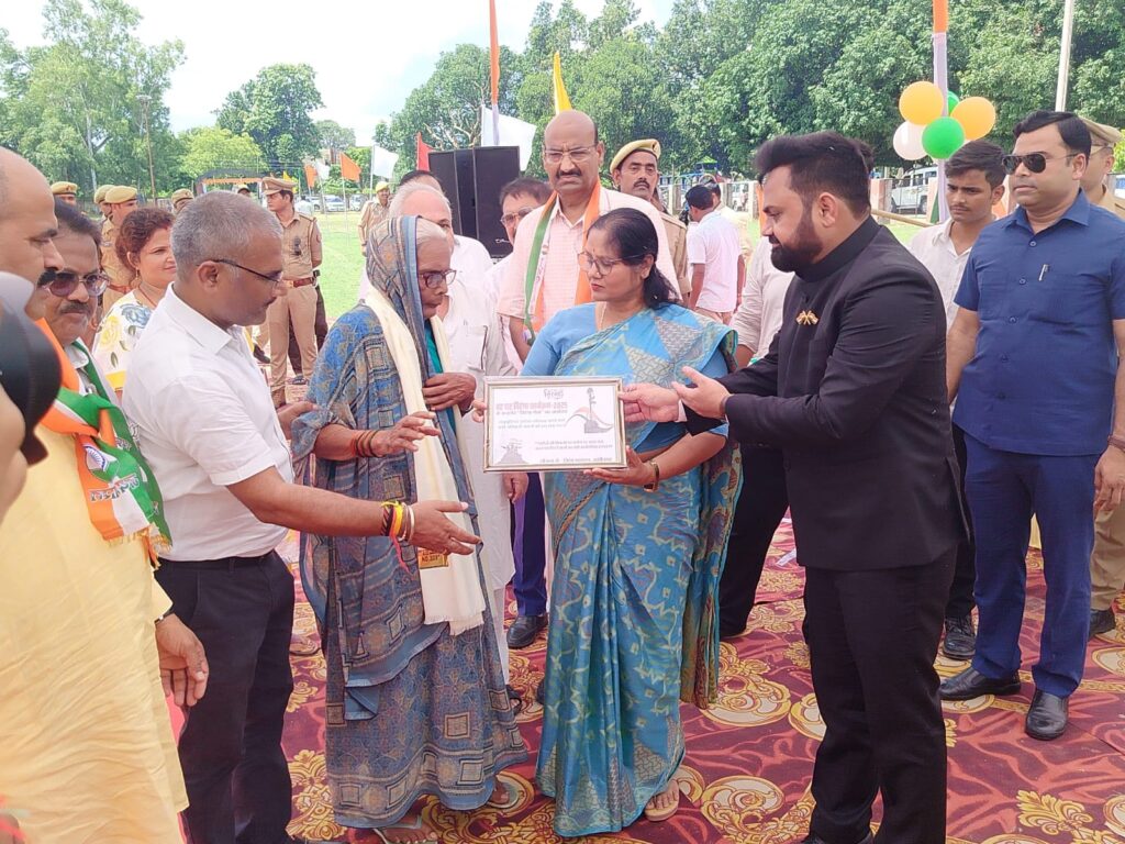 इस अवसर पर मा0 राज्यमंत्री ने स्वतंत्रता संग्राम सेनानियों/विधवाओं/आश्रितों डा0 प्रहलाद प्रसाद प्रजापति, श्रीमती लवगी देवी, पानमती देवी, श्रीमती तैबून निशा, श्रीमती सोना देवी, श्रीमती धनेश्वरी देवी को शाल ओढ़ाकर सम्मानित कर उपहार वितरण किया गया। कार्यक्रम में विभिन्न विद्यालयों के छात्र-छात्राओं द्वारा देश भक्ति पर आधारित विभिन्न सांस्कृतिक कार्यक्रमों की प्रस्तुती दी गयी।