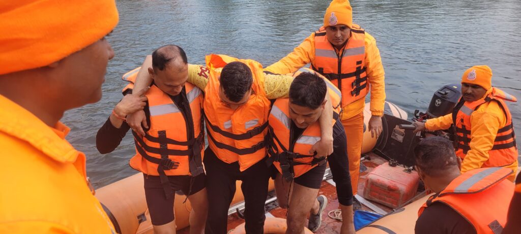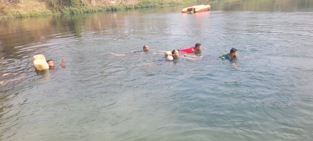 अगले चरण में नदी में डूबे व्यक्ति की खोज एनडीआरएफ के प्रशिक्षित गोताखोरों द्वारा की गई। चौथे दृश्य में क्षमता से अधिक यात्रियों को ले जा रही सिविल नाव के दुर्घटनाग्रस्त होने पर त्वरित रेस्क्यू कर कई लोगों की जान बचाने का अभ्यास किया गया। अंतिम चरण में नदी में डूब रहे व्यक्ति को सफलतापूर्वक बाहर निकालकर एनडीआरएफ की तत्परता और तकनीकी दक्षता का प्रदर्शन किया गया।