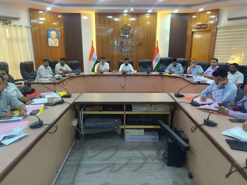 जिलाधिकारी ने बी०एल०ओ० के द्वारा प्रयोग किये जाने वाले E-BLO Mobile App की निगरानी नियमित अन्तराल पर किये जाने हेतु सम्बन्धित अधिकारियों को निर्देशित किया, तथा मतदाता सूची को त्रुटिरहित तैयार करायें जाने हेतु जिलाधिकारी द्वारा सम्बन्धित को निर्देशित किया गया। उन्होंने कहा कि मतदाता सूची की सुचिता बनाए रखें एवं त्रुटिरहित सूची तैयार किया जाना महत्वपूर्ण कार्य है, इसमें किसी प्रकार की कोई लापरवाही या गड़बड़ी किसी स्तर पर पाई जाएगी तो संबंधित के विरुद्ध कड़ी कार्यवाही की जाएगी। जिलाधिकारी द्वारा बैठक में अनुपस्थित पाये गये खण्ड विकास अधिकारी, तमकुहीराज व खड्डा पर नाराजगी व्यक्त करते हुए उनके पुनः प्रशिक्षण करायें जाने हेतु अपर जिलाधिकारी वि०/रा० कुशीनगर को निर्देश दिया गया। जिलाधिकारी द्वारा सहायक जिला निर्वाचन अधिकारी को निर्देशित किया गया कि नवसृजित विस्तारित नगर पंचायतों से प्रभावित ग्राम पंचायतों के वार्डो का व क्षेत्र का भलीभाँति परीक्षण करते हुए अग्रिम कार्यवाही करें।