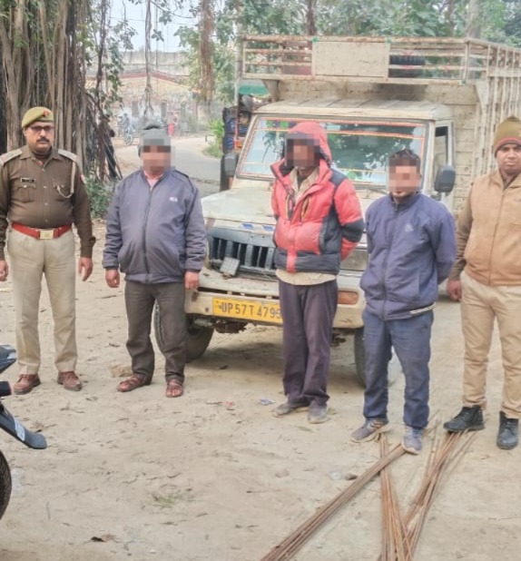 पुलिस ने तत्परता दिखाते हुए मौके से प्रभु पुत्र सुखदेव, रामचन्दर पुत्र मक्खन एवं रम्भू पुत्र सुखदेव को गिरफ्तार कर लिया। आरोपियों के पास से चोरी की गई करीब 03 क्विंटल सरिया और घटना में प्रयुक्त पिकअप वाहन संख्या UP57T4793 को कब्जे में ले लिया गया।
