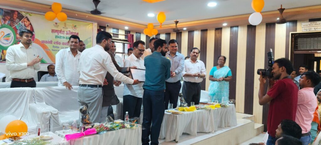 उक्त के आलोक में मुख्य विकास अधिकारी द्वारा दिए गए निर्देश के क्रम में विकास खण्ड विशुनपुरा सभागार में संपूर्णता अभियान सम्मान समारोह एवं आकांक्षा हाट कार्यक्रम का आज आयोजन किया गया। *कार्यक्रम सहायक विकास अधिकारी कृषि प्रहलाद गुप्ता (01 इंडिकेटर्स), महिला चिकित्साधिकारी डॉ राजकुमारी साहू (01 इंडिकेटर्स), शोधार्थी नीति आयोग प्रवीण अग्निहोत्री (05 इंडिकेटर्स), एएनएम शिखा सिंह (03 इंडिकेटर्स), आंगनवाड़ी कार्यकत्री फूलपति देवी (01 इंडिकेटर्स), आशा बिंदा देवी (02 इंडिकेटर्स) तथा अन्य 36 फ्रंट लाइन वर्कर को ट्रॉफी तथा प्रमाण देकर सम्मानित किया गया*।