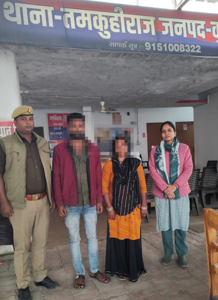 अपनी ही करतूत छिपाने और पुलिस को गुमराह करने के लिए मीरा देवी थाने पहुंचकर गुमशुदगी की कहानी सुनाती रही, लेकिन पुलिस की पैनी नजर और सतत निगरानी ने इस षड्यंत्र का भंडाफोड़ कर दिया। आज 26 नवम्बर 2025 को थाना तमकुहीराज पुलिस टीम ने मुख्य अभियुक्ता मीरा देवी तथा उसके प्रेमी मुकेश चौहान को गिरफ्तार कर लिया। दोनों के विरुद्ध धारा 137(2) में बढ़ोत्तरी कर 140(3), 127(1), 212, 61(2) बीएनएस के तहत कठोर कार्रवाई की जा रही है।
