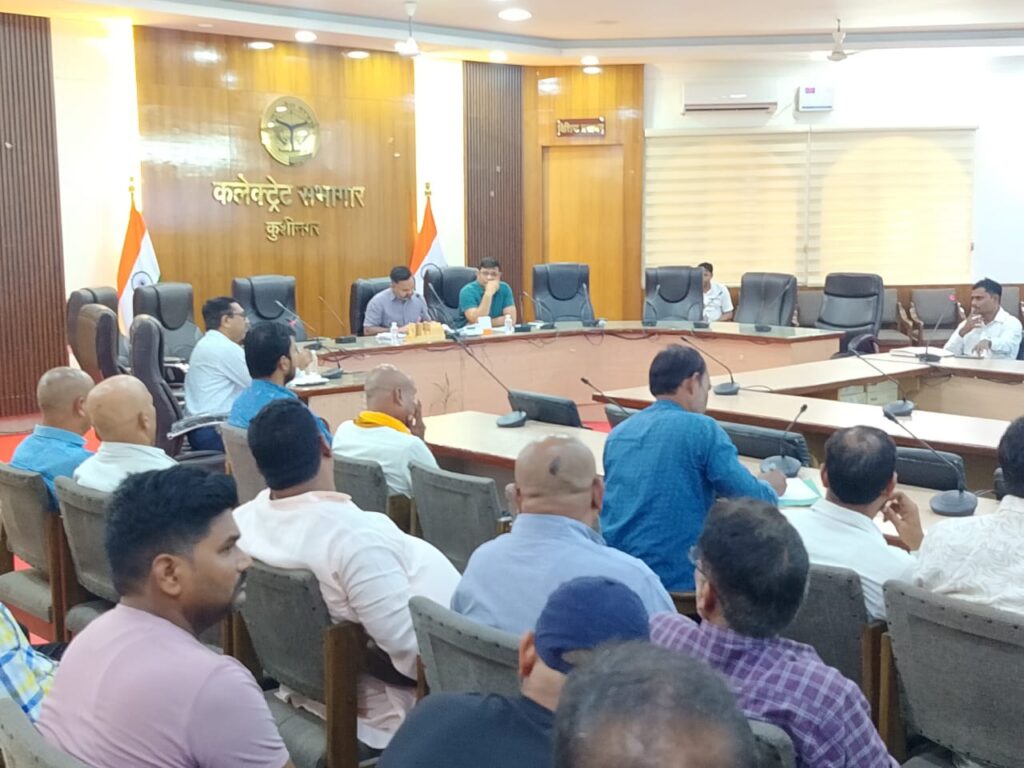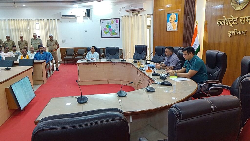 कुशीनगर जिलाधिकारी महेंद्र सिंह तंवर की अध्यक्षता में जिला आबकारी अधिकारी की उपस्थिति में ओएशिस के प्रतिनिधि एवं समस्त आबकारी निरीक्षक के साथ देशी शराब दुकानों, कम्पोजिट दुकानों एवं मॉडल शॉप दुकानों के अनुज्ञापियों के साथ बैठक आयोजित की गई।