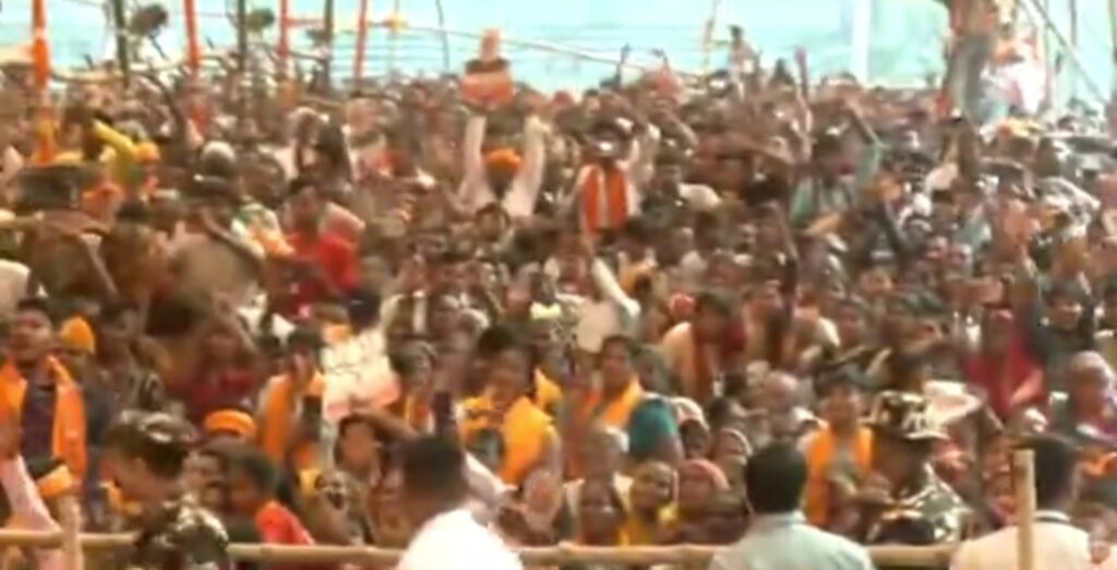 मोतिहारी विधानसभा क्षेत्र में आयोजित इस जनसभा में लाखों की संख्या में जनता उमड़ पड़ी। मंच पर पहुंचते ही योगी आदित्यनाथ का जोरदार स्वागत हुआ और पूरा मैदान “जय श्रीराम” तथा “बिहार मांगे योगी” के नारों से गूंज उठा।