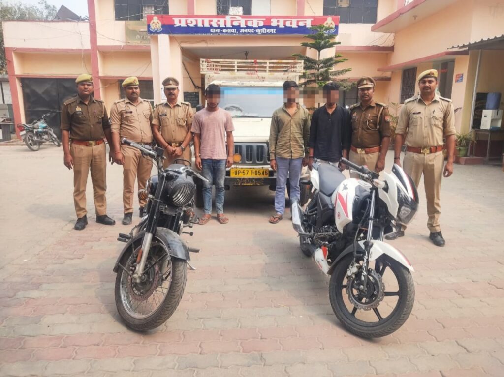 जनपद कुशीनगर के थाना कसया, कोतवाली पडरौना व तुर्कपट्टी क्षेत्र में हुई मोटरसाइकिल चोरी की घटनाओं का पुलिस ने सफल अनावरण करते हुए तीन शातिर अभियुक्तों को गिरफ्तार कर लिया है। इस कार्रवाई में आधुनिक “यक्ष ऐप” की भूमिका निर्णायक साबित हुई, जिसने जांच को नई दिशा दी।