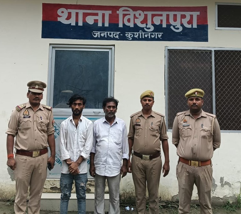 कुशीनगर के थाना विशुनपुरा पर पीड़िता के पिता द्वारा प्रार्थना पत्र दिया गया की वादी की नाबालिग पुत्री उम्र लगभग 14 वर्ष को सद्दाम अली पुत्र मजहब अली निवासी बैकुंठपुर कोठी थाना विशुनपुरा द्वारा बहला फुसलाकर भगा ले गया है। तहरीर के आधार पर थाना विशुनपुरा पर मु0अ0सं0-243/2025 पंजीकृत किया गया। पुलिस अधीक्षक कुशीनगर श्री संतोष कुमार मिश्रा द्वारा पीड़िता की सकुशल बरामदगी व अभियुक्त की गिरफ्तारी हेतु पुलिस टीमों का गठन कर आवश्यक दिशा निर्देश दिया गया था। जिसके क्रम में आज दिनांक 04.08.2025 को विशुनपुरा पुलिस टीम द्वारा पीड़िता का सकुशल बरामदगी करते हुए कुल तीन अभियुक्तों को गिरफ्तार कर लिया गया है।